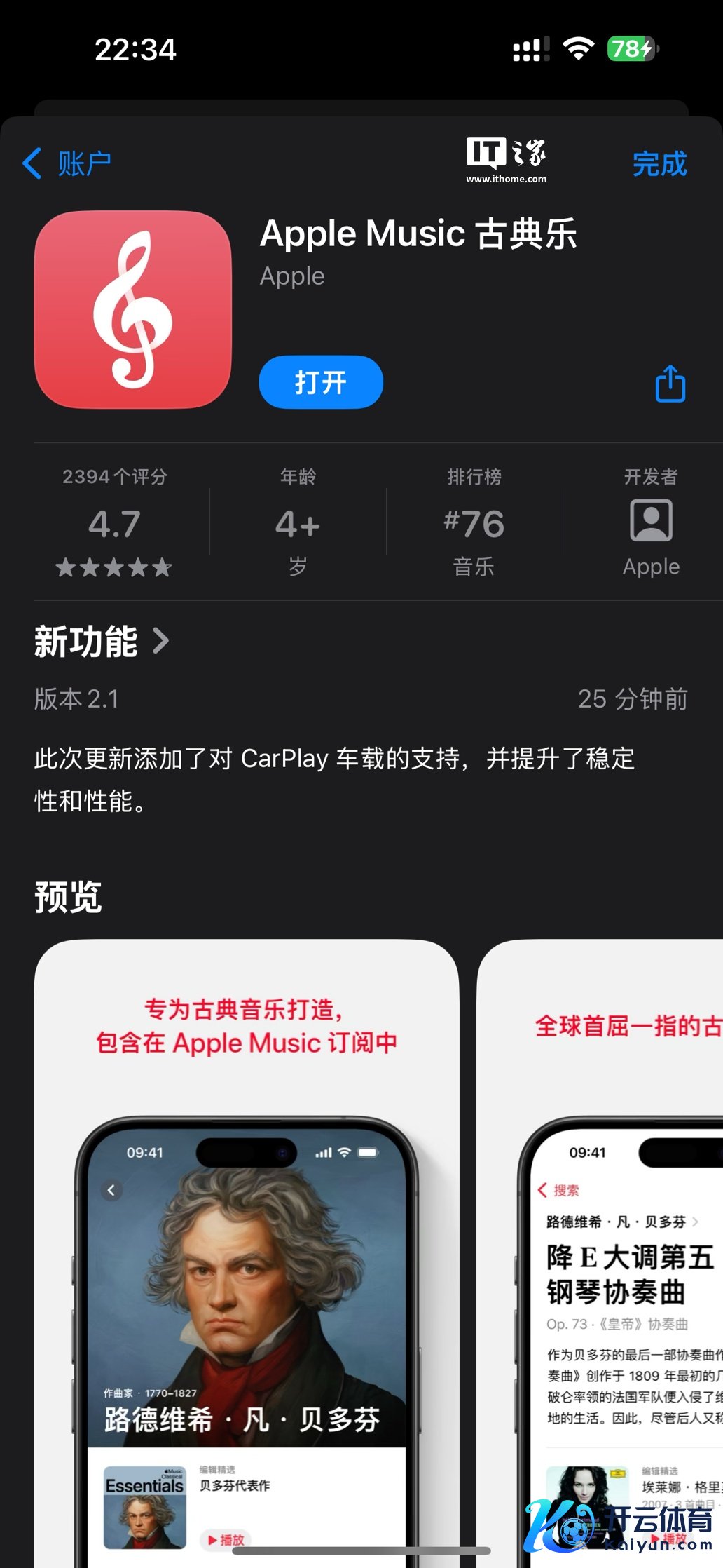 IT之家 11 月 12 日音讯,苹果 Apple Music 古典乐摆布本日更新到了 2.1 版块,加多了对 CarPlay 的复古,并提高了踏实性和性能。