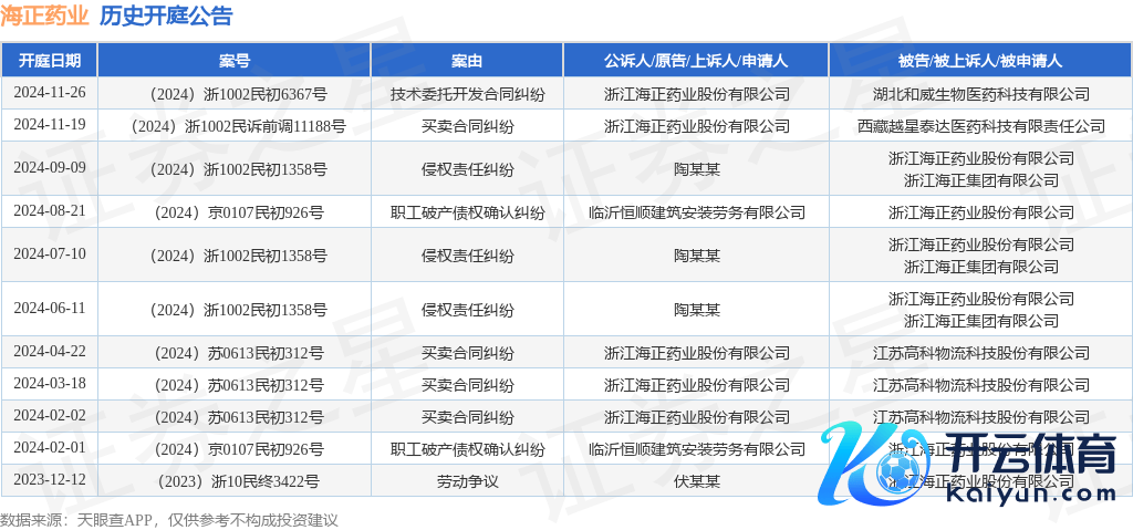 本站音书,把柄天眼查APP知道现金九游体育app平台,近日公布了一则浙江海正药业股份有限公司算作原告/上诉东说念主的开庭公告,详备执行如下: