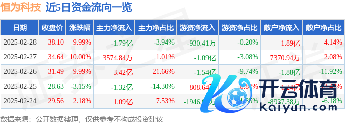 本站音问,为止2025年2月28日收盘,恒为科技(603496)报收于38.1元,高潮9.99%,已荟萃涨停3天,换手率38.3%,成交量122.65万手,成交额45.59亿元。