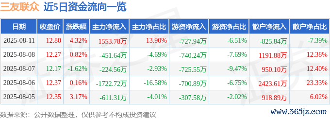 本站音问,收尾2025年8月11日收盘,三友联众(300932)报收于12.8元,高潮4.32%,换手率3.89%,成交量8.87万手,成交额1.12亿元。