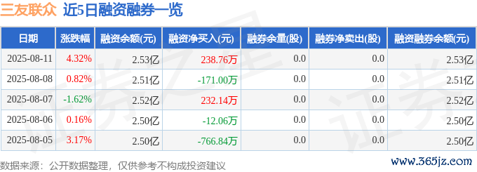 三友联众融资融券信息裸露,融资方面,当日融资买入1489.52万元,融资偿还1250.77万元,融资净买入238.76万元。融券方面,融券卖出0.0股,融券偿还0.0股,融券余量0.0股,融券余额0.0万元。融资融券余额2.53亿元。